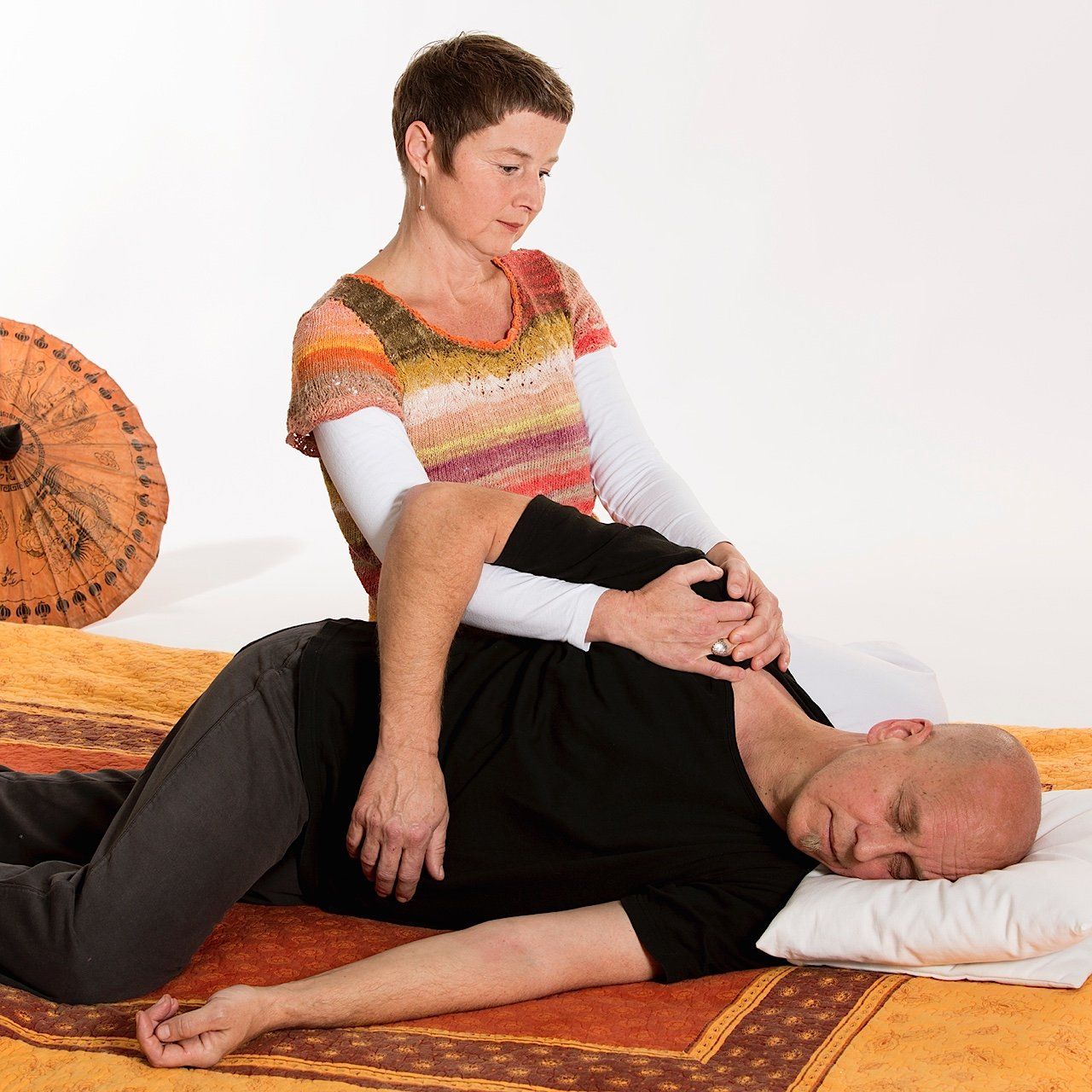 Shiatsu beruht auf dem ursprünglichen menschlichen Impuls, schmerzende oder verspannte Körperstellen zu berühren und ist eingebettet in der Tradition der fernöstlichen Heilkunst. Durch den Kontakt mit Hand, Knie oder Ellenbogen werden Shiatsu-Impulse gesetzt, die den harmonischen Fluss der Lebensenergie unterstützen. Dieser Vorgang lässt sich am Besten mit einem „Anlehnen“ vergleichen, in Abgrenzung von reinem Drücken oder Kneten aus anderen Massageformen. Lösende Muskeldehnungen und sanfte Gelenkmobilisation unterstützen dabei die Freisetzung der Lebenskraft.